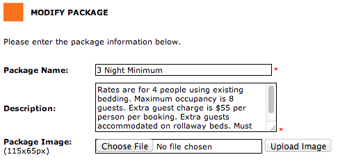 From the main menu select Rates (or Packages) > Select a Package to Modify > Choose File > Upload Image.